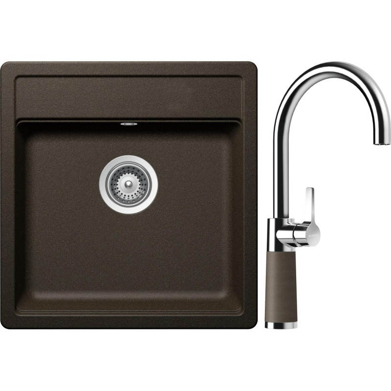 Cenově zvýhodněný set dřezu a baterie Schock S10-6 - obsahuje granitový jednodřez Mono N-100S Bronze a baterii SC-520 Bronze.