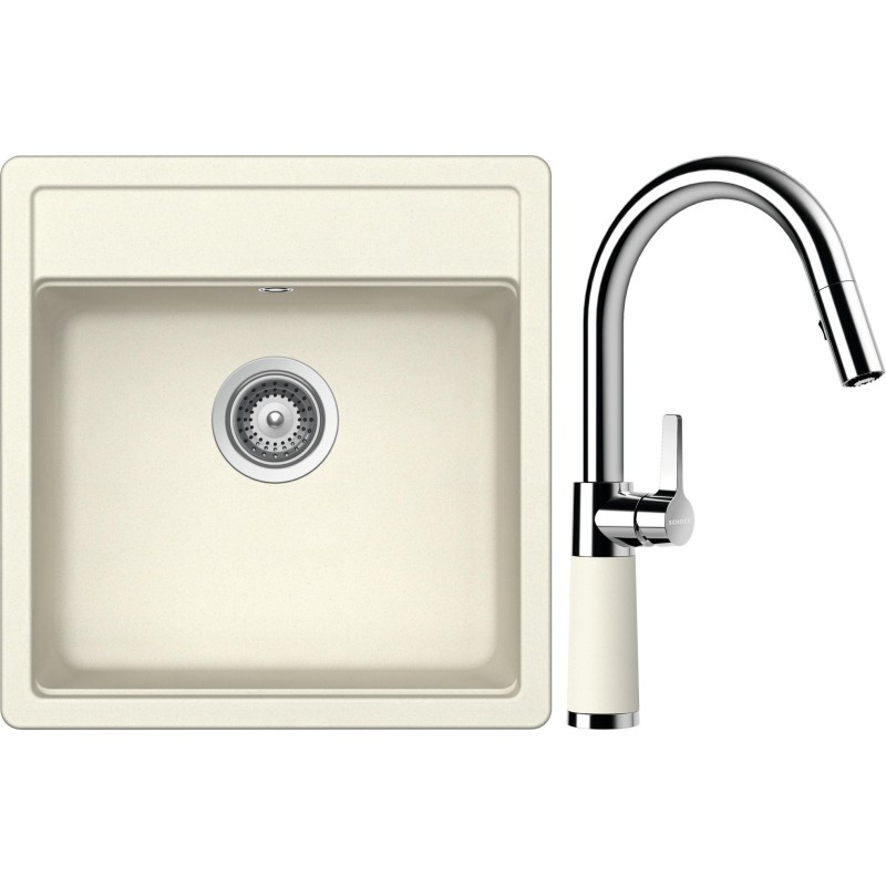 Cenově zvýhodněný set dřezu a baterie Schock S10-7 - obsahuje granitový jednodřez Mono N-100S Magnolia a baterii se sprchou SC-520.120 Magnolia.