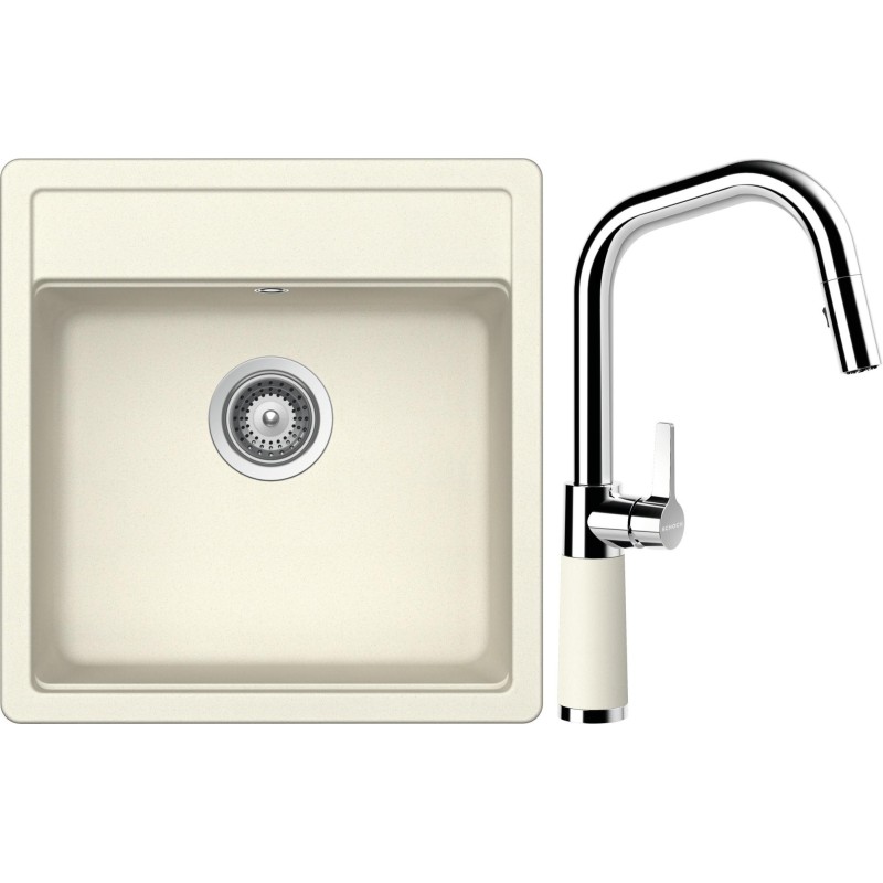 Cenově zvýhodněný set dřezu a baterie Schock S10-9 - obsahuje granitový jednodřez Mono N-100S Magnolia a baterii se sprchou SC-530.120 Magnolia.