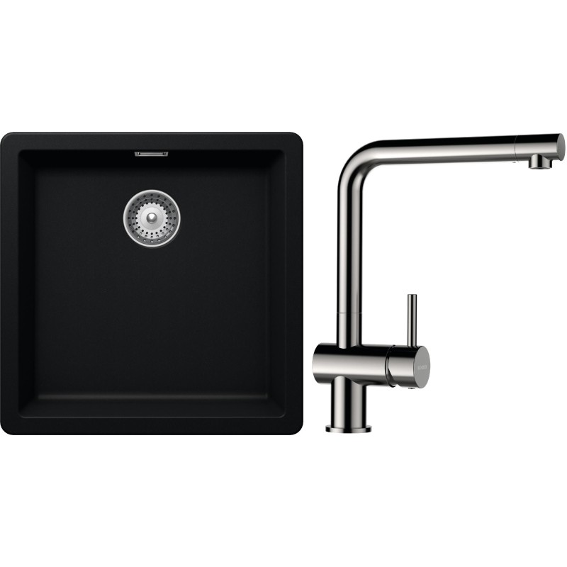Cenově zvýhodněný set dřezu a baterie Schock S11-3 - obsahuje granitový jednodřez Greenwich N-100 Puro a baterii Epos Nerezový vzhled.