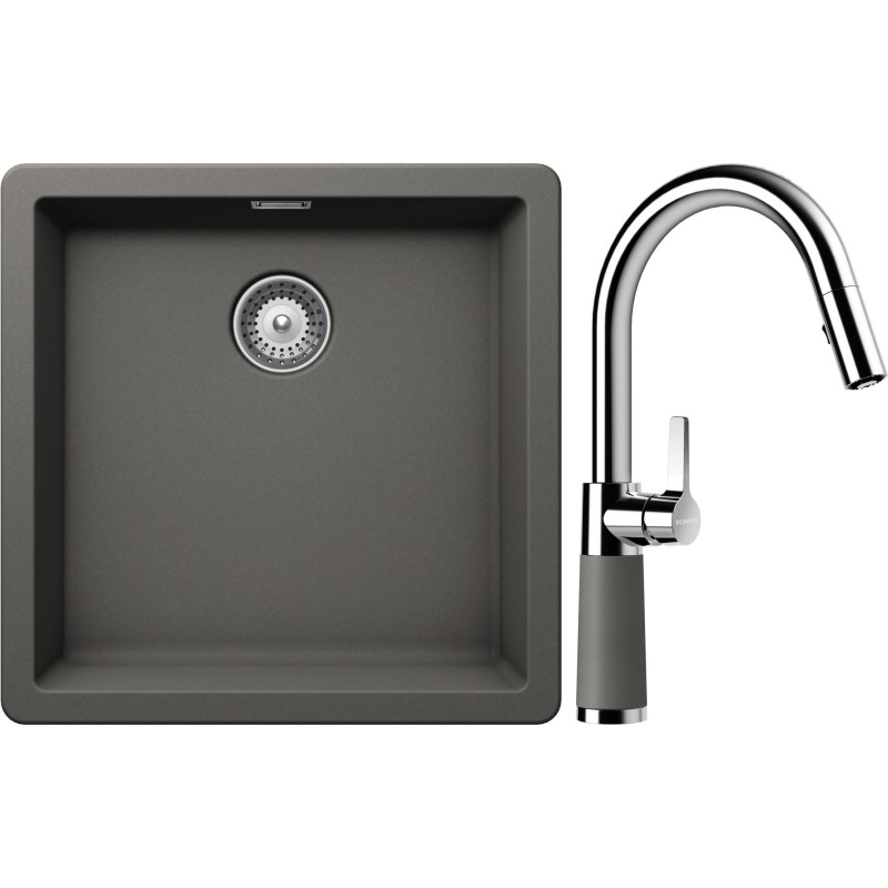 Cenově zvýhodněný set dřezu a baterie Schock S11-7 - obsahuje granitový jednodřez Greenwich N-100 Silverstone a baterii se sprchou SC-520.120 Silverstone.
