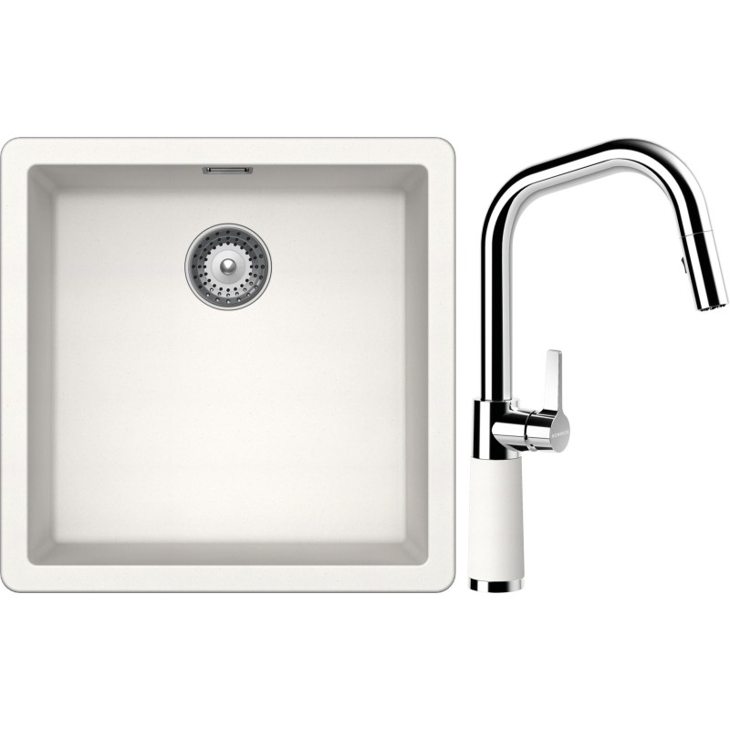 Cenově zvýhodněný set dřezu a baterie Schock S11-9 - obsahuje granitový jednodřez Greenwich N-100 Polaris a baterii se sprchou SC-530.120 Polaris.