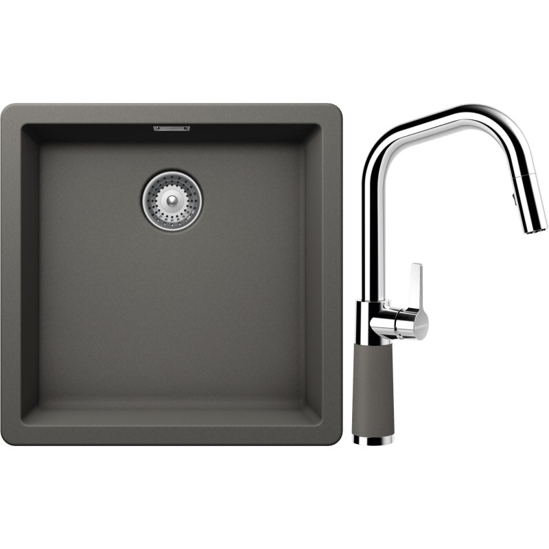 Cenově zvýhodněný set dřezu a baterie Schock S11-9 - obsahuje granitový jednodřez Greenwich N-100 Silverstone a baterii se sprchou SC-530.120 Silverstone.