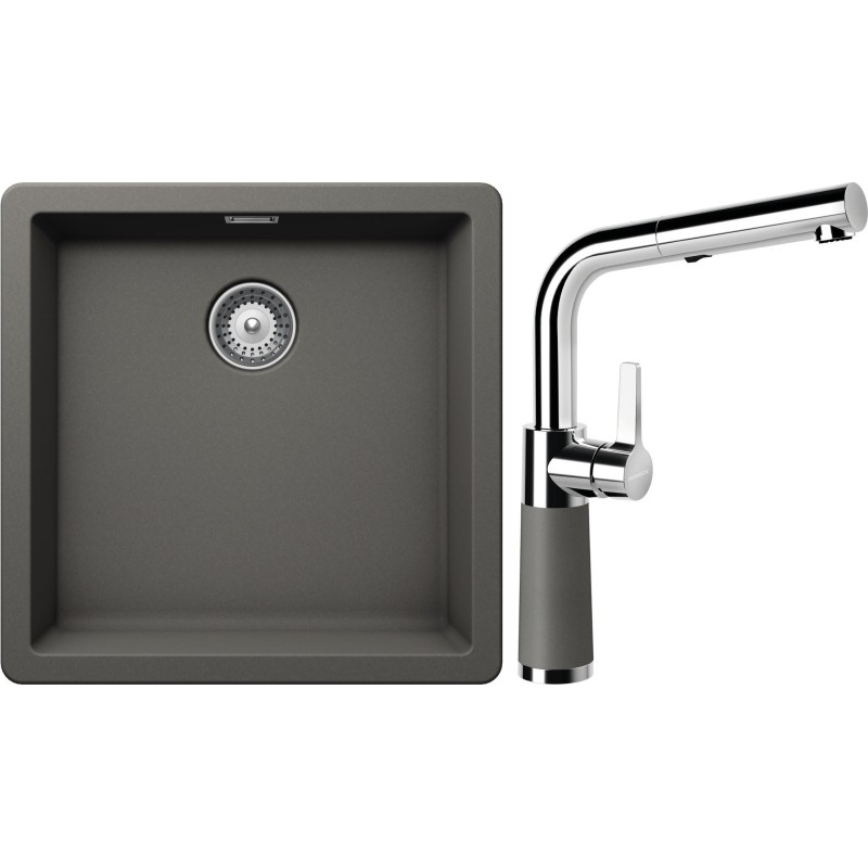 Cenově zvýhodněný set dřezu a baterie Schock S11-11 - obsahuje granitový jednodřez Greenwich N-100 Silverstone a baterii se sprchou SC-540.120 Silverstone.