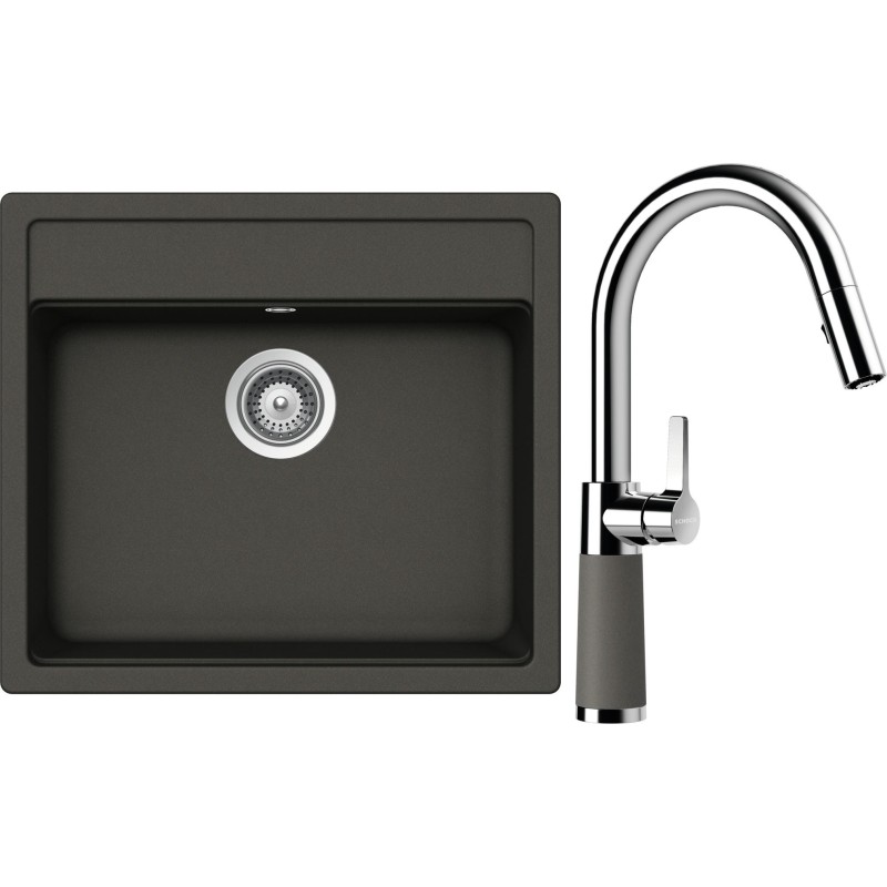 Cenově zvýhodněný set dřezu a baterie Schock S24-9 - obsahuje granitový jednodřez Nemo N-100 Asphalt a baterii se sprchou SC-520.120 Asphalt.