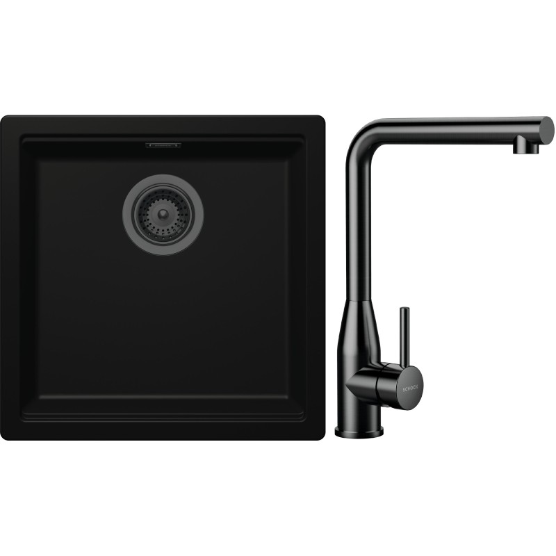 Cenově zvýhodněný set dřezu a baterie Schock S31-15 - obsahuje granitový jednodřez Kiruna N-100 Night, baterii Keto Gunmetal brushed a části dřezu v provedení Gunmetal brushed.