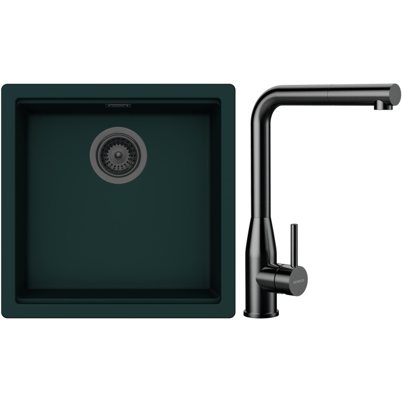Cenově zvýhodněný set dřezu a baterie Schock S31-20 - obsahuje granitový jednodřez Kiruna N-100 Ivy, baterii s vytahovací koncovkou Keto.120 Gunmetal brushed a části dřezu v provedení Gunmetal brushed.