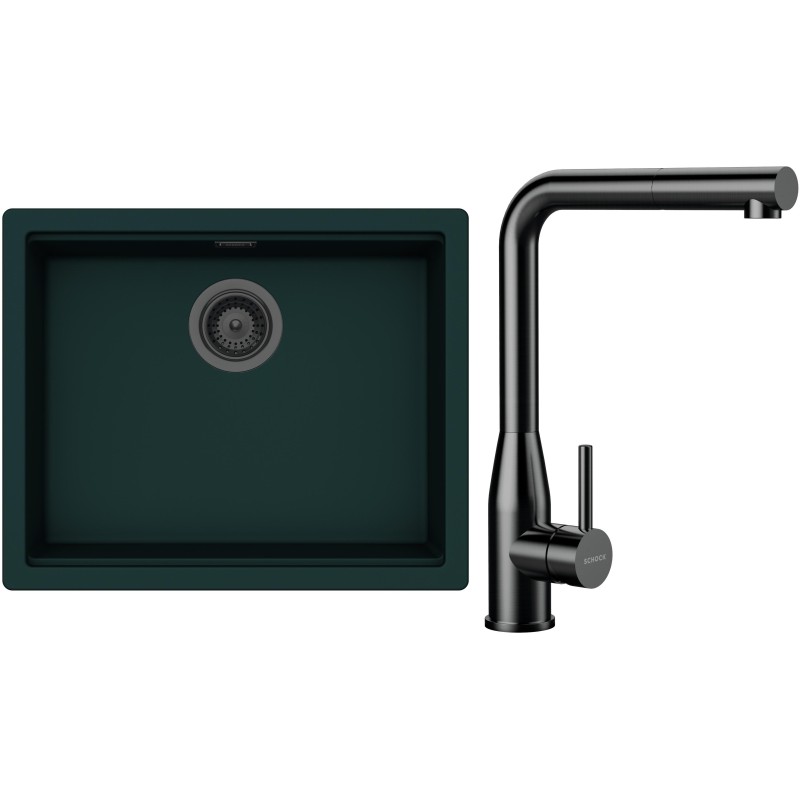 Cenově zvýhodněný set dřezu a baterie Schock S32-20 - obsahuje granitový jednodřez Kiruna N-100L Ivy, baterii s vytahovací koncovkou Keto.120 Gunmetal brushed a části dřezu v provedení Gunmetal brushed.