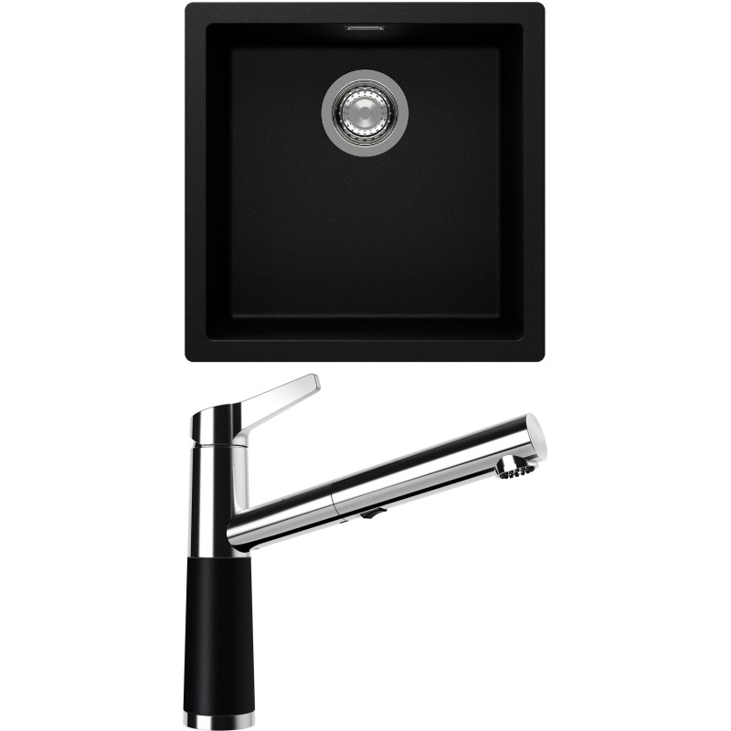 Cenově zvýhodněný set dřezu a baterie Schock S13-5 - obsahuje granitový jednodřez Kaia N-100 Puro a baterii se sprchou SC-510.120 Puro.