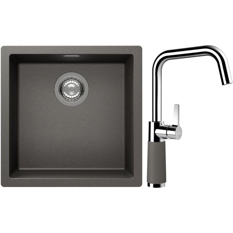 Cenově zvýhodněný set dřezu a baterie Schock S13-8 - obsahuje granitový jednodřez Kaia N-100 Silverstone a baterii SC-530 Silverstone.