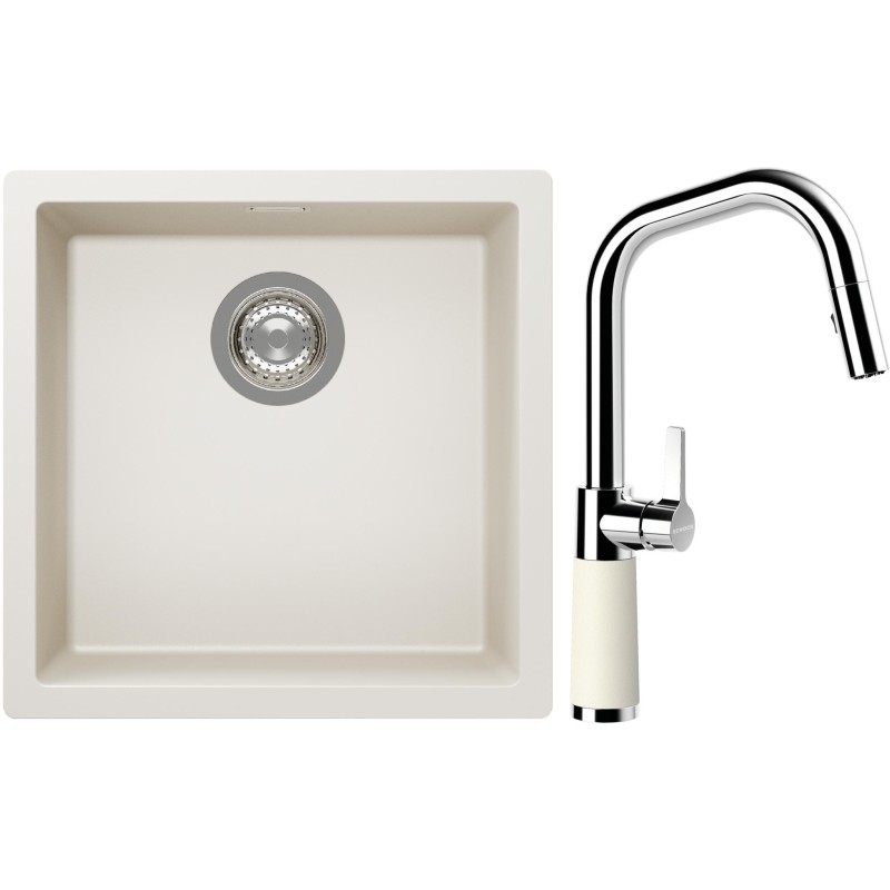 Cenově zvýhodněný set dřezu a baterie Schock S13-9 - obsahuje granitový jednodřez Kaia N-100 Magnolia a baterii se sprchou SC-530.120 Magnolia.