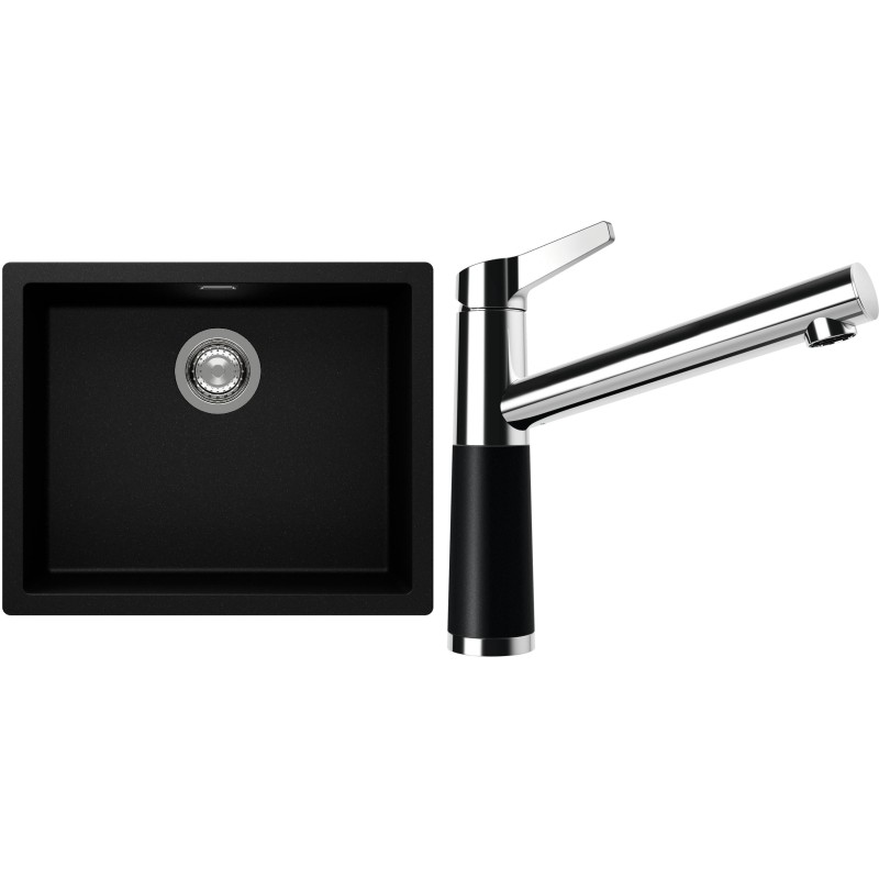 Cenově zvýhodněný set dřezu a baterie Schock S14-4 - obsahuje granitový jednodřez Kaia N-100L Puro a baterii SC-510 Puro.