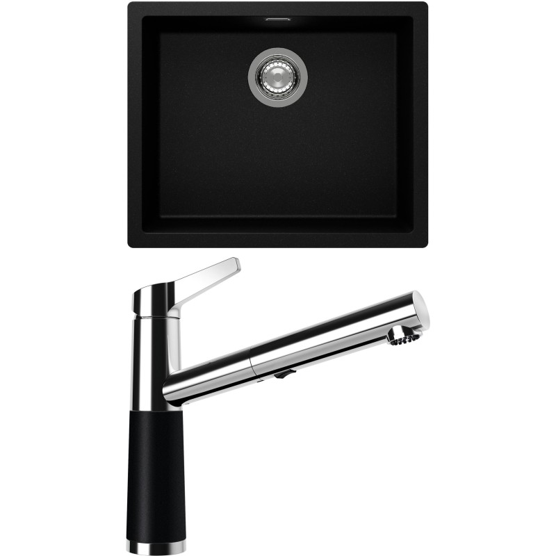 Cenově zvýhodněný set dřezu a baterie Schock S14-5 - obsahuje granitový jednodřez Kaia N-100L Puro a baterii se sprchou SC-510.120 Puro.