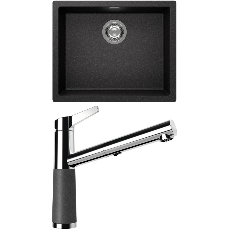 Cenově zvýhodněný set dřezu a baterie Schock S14-5 - obsahuje granitový jednodřez Kaia N-100L Stone a baterii se sprchou SC-510.120 Stone.