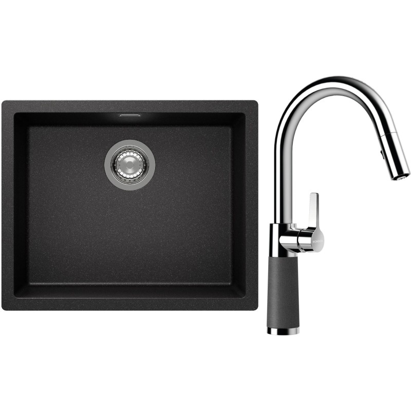 Cenově zvýhodněný set dřezu a baterie Schock S14-7 - obsahuje granitový jednodřez Kaia N-100L Stone a baterii se sprchou SC-520.120 Stone.