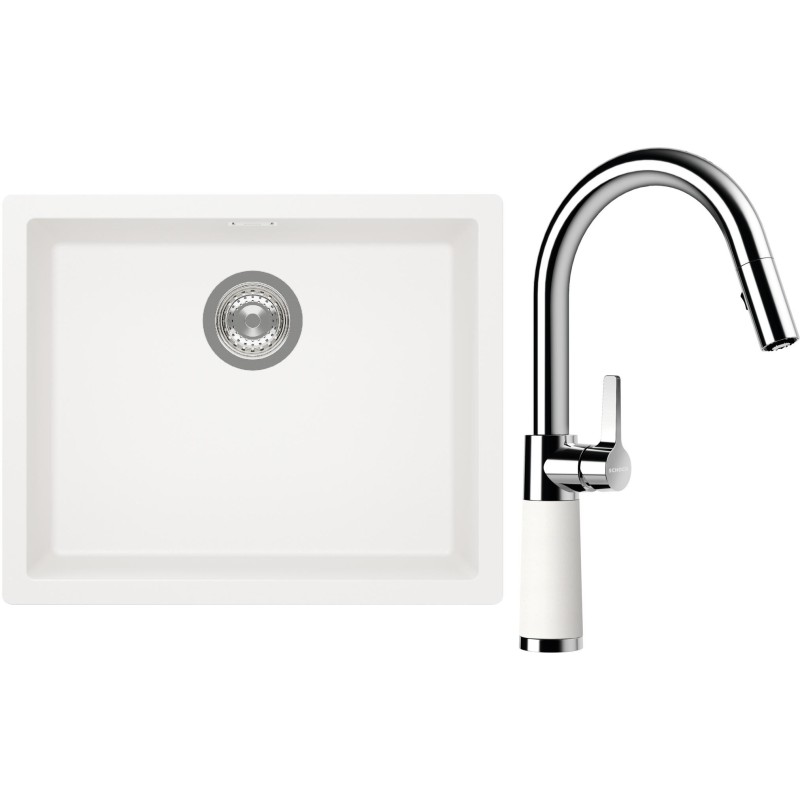 Cenově zvýhodněný set dřezu a baterie Schock S14-7 - obsahuje granitový jednodřez Kaia N-100L Polaris a baterii se sprchou SC-520.120 Polaris.
