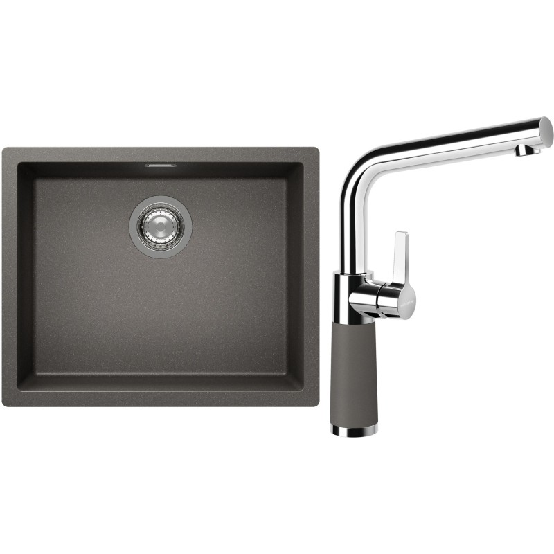 Cenově zvýhodněný set dřezu a baterie Schock S14-10 - obsahuje granitový jednodřez Kaia N-100L Silverstone a baterii SC-540 Silverstone.