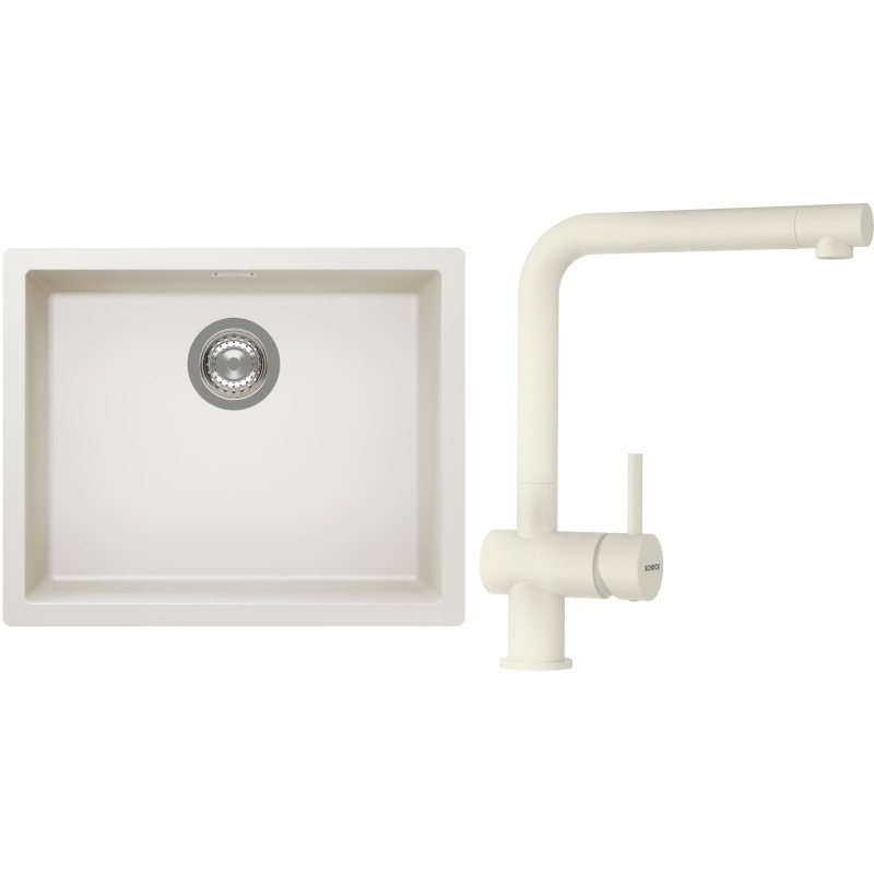 Cenově zvýhodněný set dřezu a baterie Schock S14-1 - obsahuje granitový jednodřez Kaia N-100L Magnolia a baterii Epos Magnolia.
