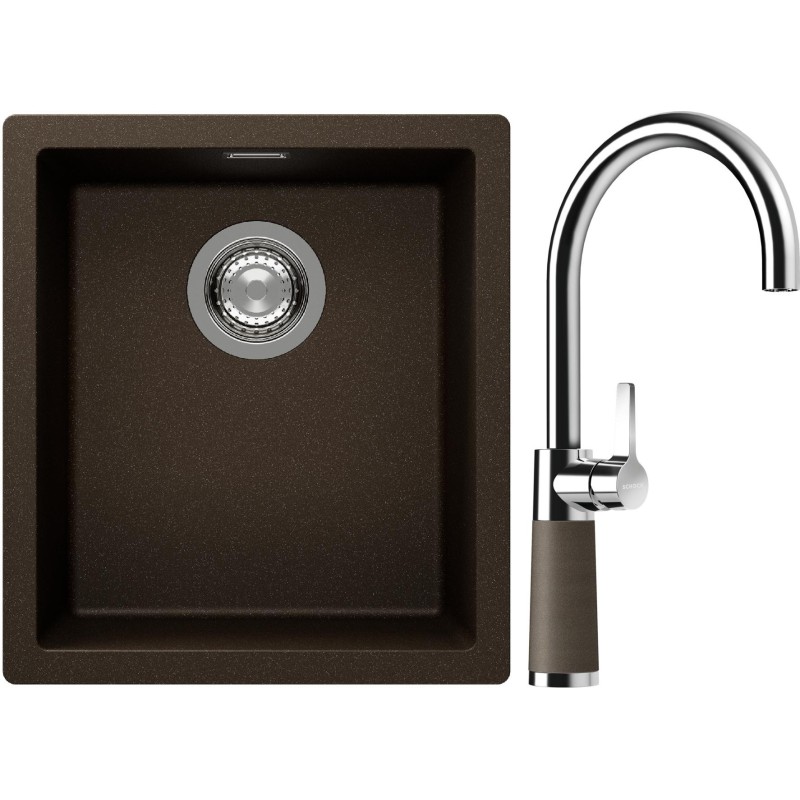 Cenově zvýhodněný set dřezu a baterie Schock S12-6 - obsahuje granitový jednodřez Kaia N-100S Bronze a baterii SC-520 Bronze.