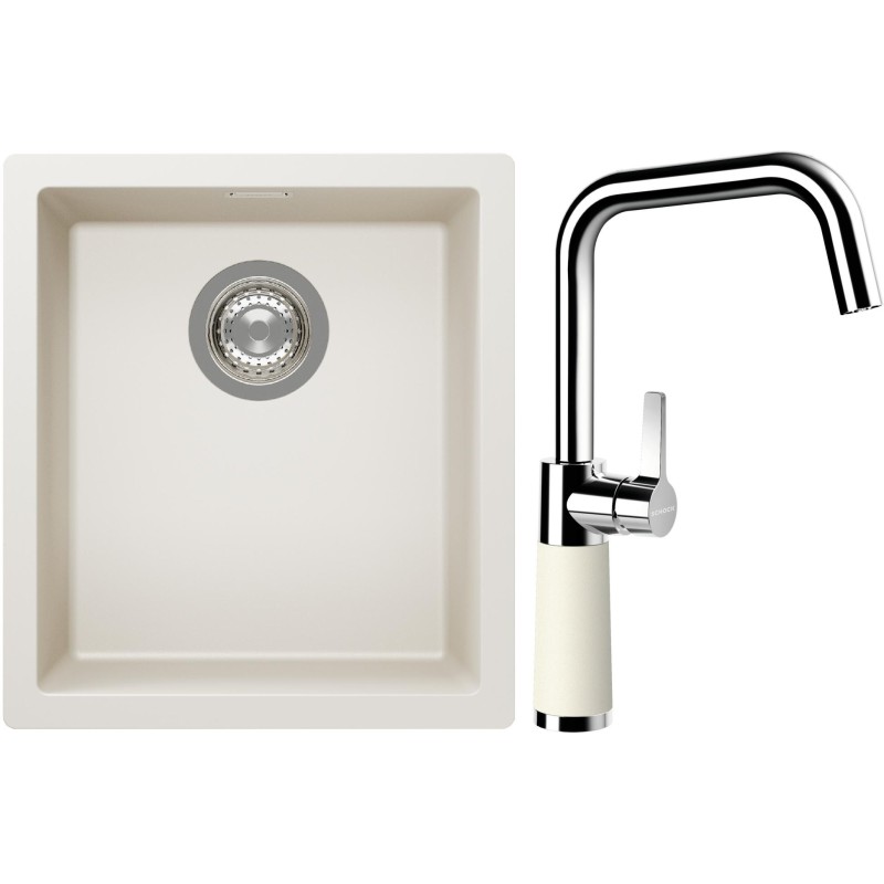 Cenově zvýhodněný set dřezu a baterie Schock S12-8 - obsahuje granitový jednodřez Kaia N-100S Magnolia a baterii SC-530 Magnolia.