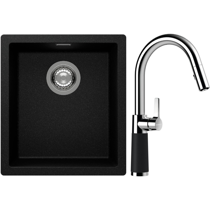 Cenově zvýhodněný set dřezu a baterie Schock S12-7 - obsahuje granitový jednodřez Kaia N-100S Magma a baterii se sprchou SC-520.120 Magma.