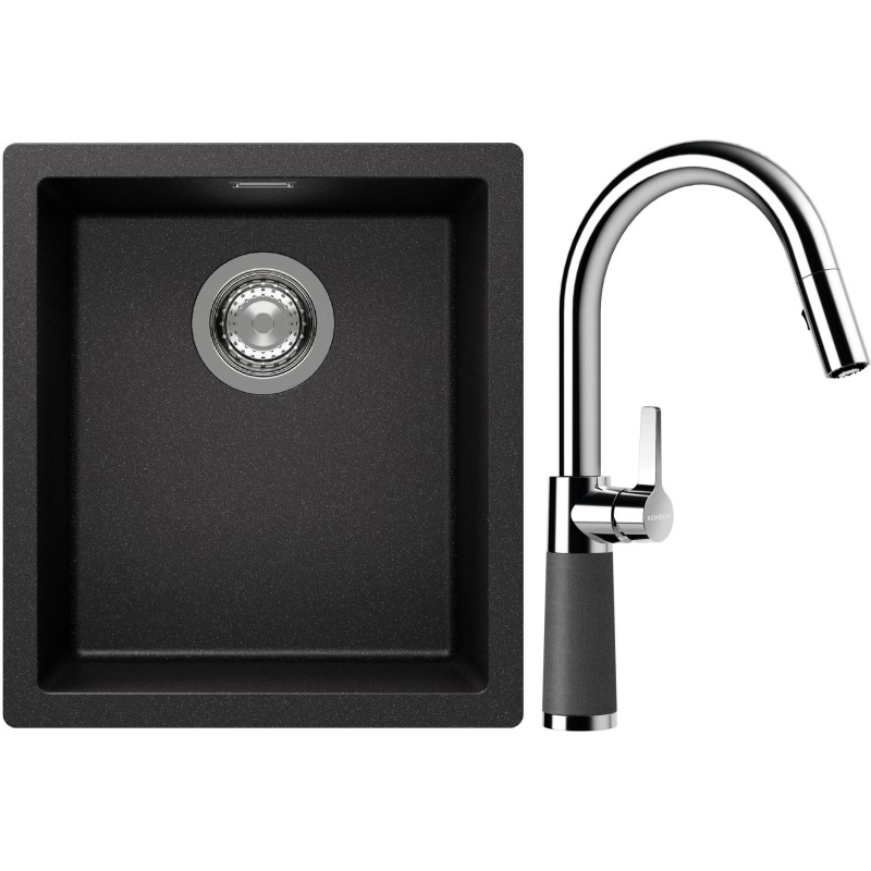 Cenově zvýhodněný set dřezu a baterie Schock S12-7 - obsahuje granitový jednodřez Kaia N-100S Stone a baterii se sprchou SC-520.120 Stone.