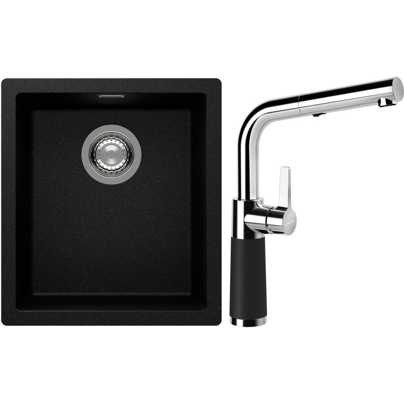 Cenově zvýhodněný set dřezu a baterie Schock S12-11 - obsahuje granitový jednodřez Kaia N-100S Magma a baterii se sprchou SC-540.120 Magma.