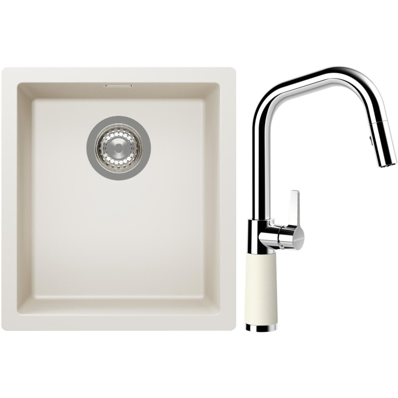 Cenově zvýhodněný set dřezu a baterie Schock S12-9 - obsahuje granitový jednodřez Kaia N-100S Magnolia a baterii se sprchou SC-530.120 Magnolia.