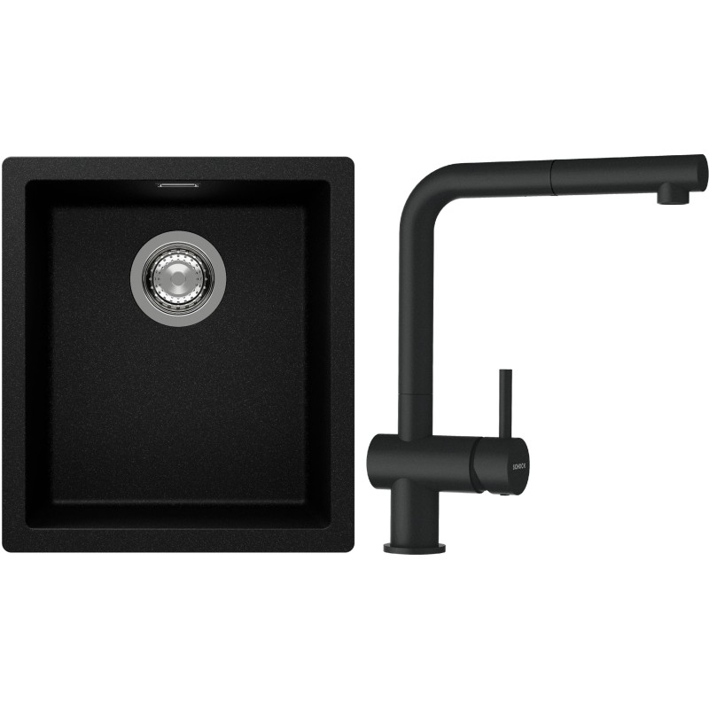 Cenově zvýhodněný set dřezu a baterie Schock S12-2 - obsahuje granitový jednodřez Kaia N-100S Magma a baterii s vytahovací koncovkou Epos.120 Magma.