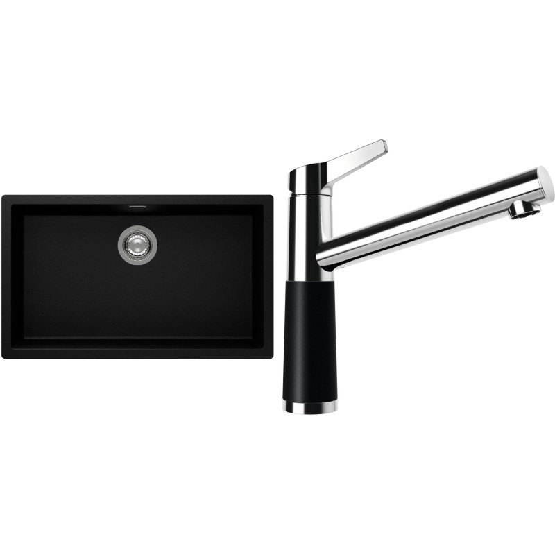 Cenově zvýhodněný set dřezu a baterie Schock S15-4 - obsahuje granitový jednodřez Kaia N-100XL Puro a baterii SC-510 Puro.