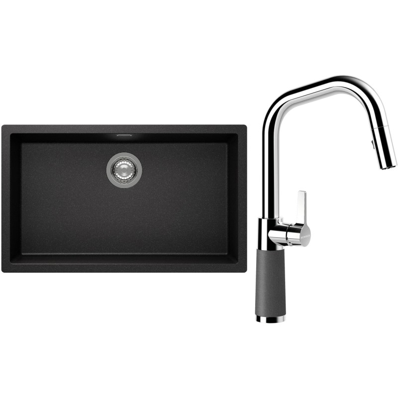 Cenově zvýhodněný set dřezu a baterie Schock S15-9 - obsahuje granitový jednodřez Kaia N-100XL Stone a baterii se sprchou SC-530.120 Stone.
