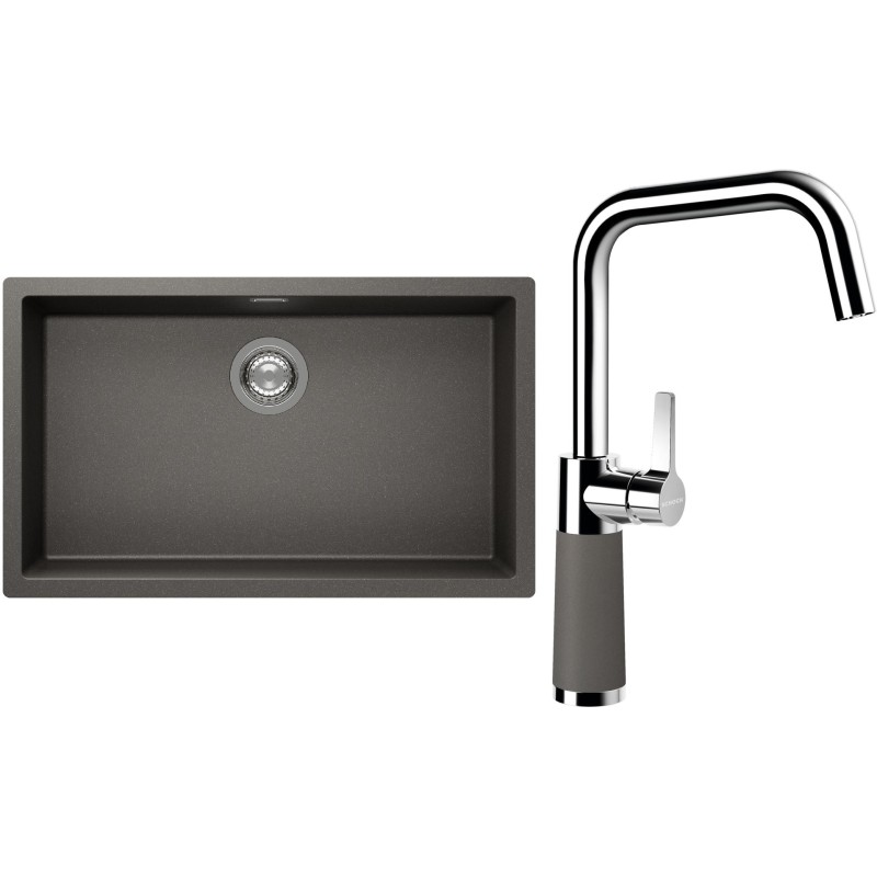 Cenově zvýhodněný set dřezu a baterie Schock S15-8 - obsahuje granitový jednodřez Kaia N-100XL Silverstone a baterii SC-530 Silverstone.