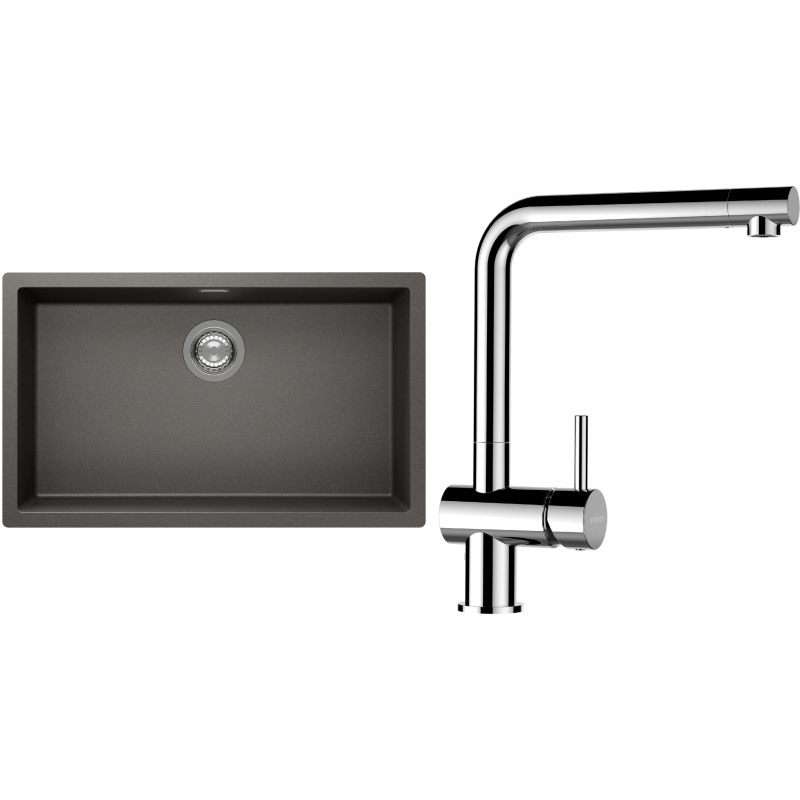 Cenově zvýhodněný set dřezu a baterie Schock S15-12 - obsahuje granitový jednodřez Kaia N-100XL Silverstone a baterii Epos Chrom.