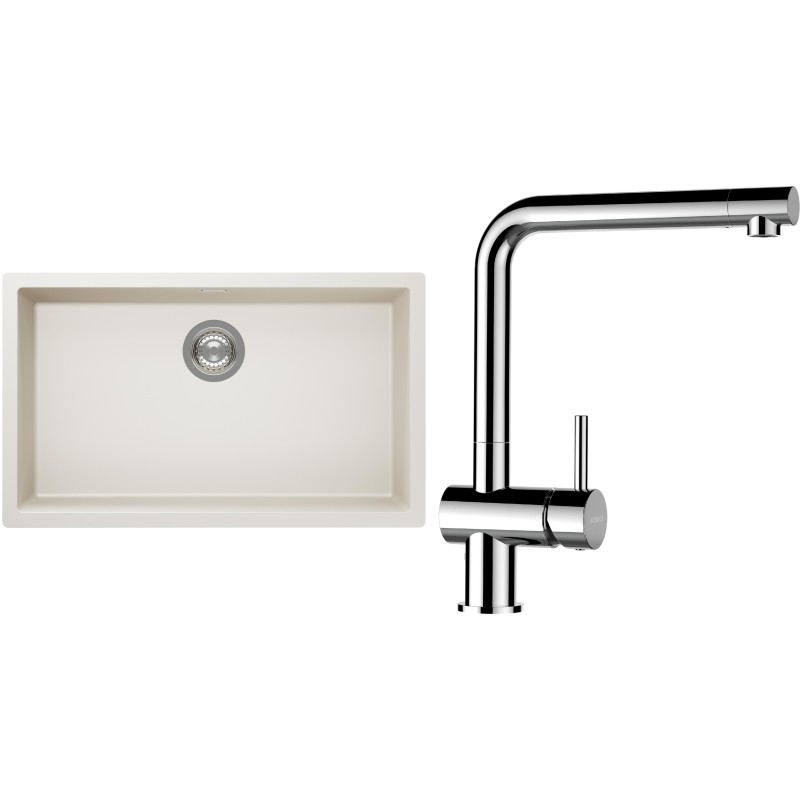 Cenově zvýhodněný set dřezu a baterie Schock S15-12 - obsahuje granitový jednodřez Kaia N-100XL Magnolia a baterii Epos Chrom.
