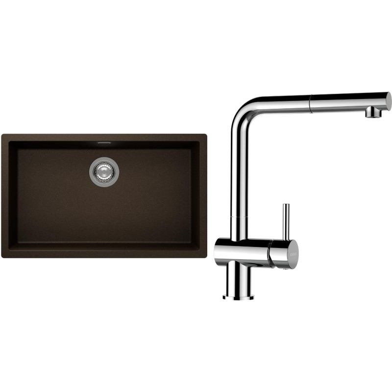 Cenově zvýhodněný set dřezu a baterie Schock S15-13 - obsahuje granitový jednodřez Kaia N-100XL Bronze a baterii s vytahovací koncovkou Epos.120 Chrom.