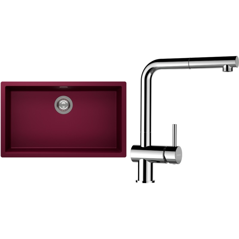 Cenově zvýhodněný set dřezu a baterie Schock S15-13 - obsahuje granitový jednodřez Kaia N-100XL Berry a baterii s vytahovací koncovkou Epos.120 Chrom.