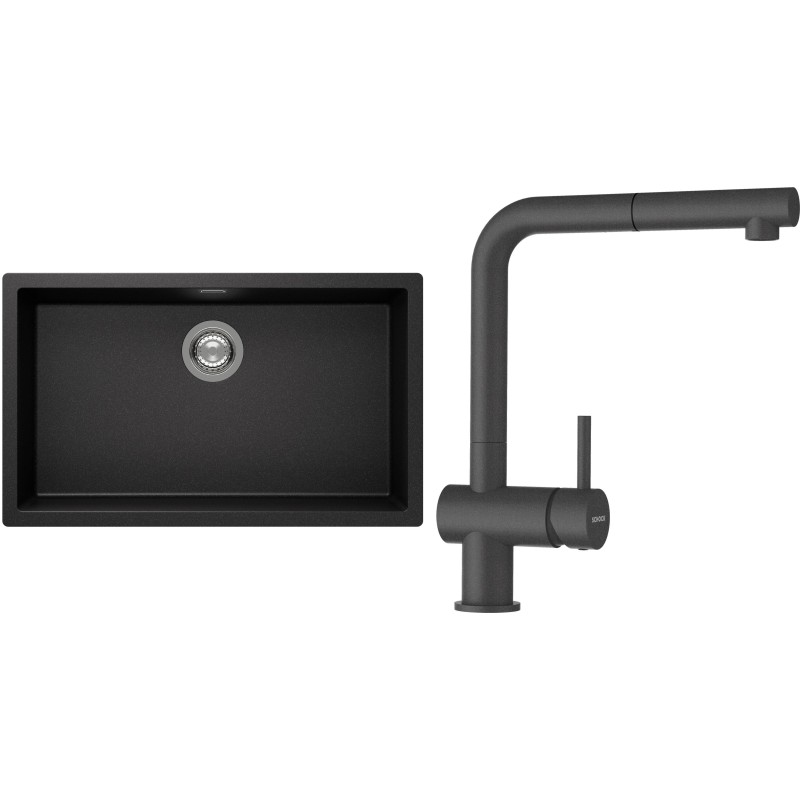 Cenově zvýhodněný set dřezu a baterie Schock S15-2 - obsahuje granitový jednodřez Kaia N-100XL Stone a baterii s vytahovací koncovkou Epos.120 Stone.