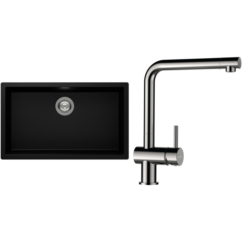 Cenově zvýhodněný set dřezu a baterie Schock S15-3 - obsahuje granitový jednodřez Kaia N-100XL Puro a baterii Epos Nerezový vzhled.