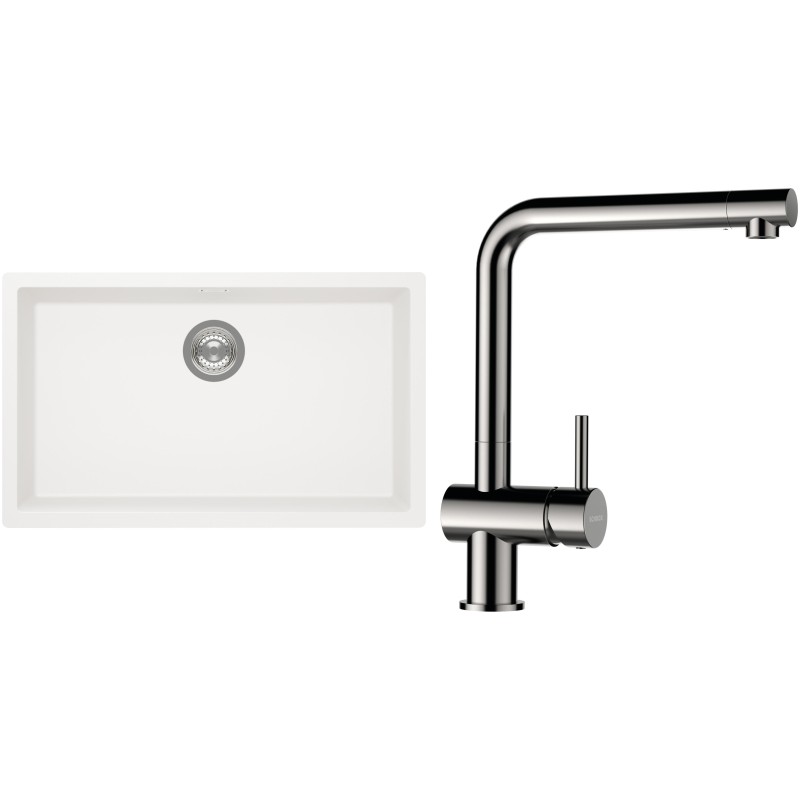 Cenově zvýhodněný set dřezu a baterie Schock S15-3 - obsahuje granitový jednodřez Kaia N-100XL Polaris a baterii Epos Nerezový vzhled.
