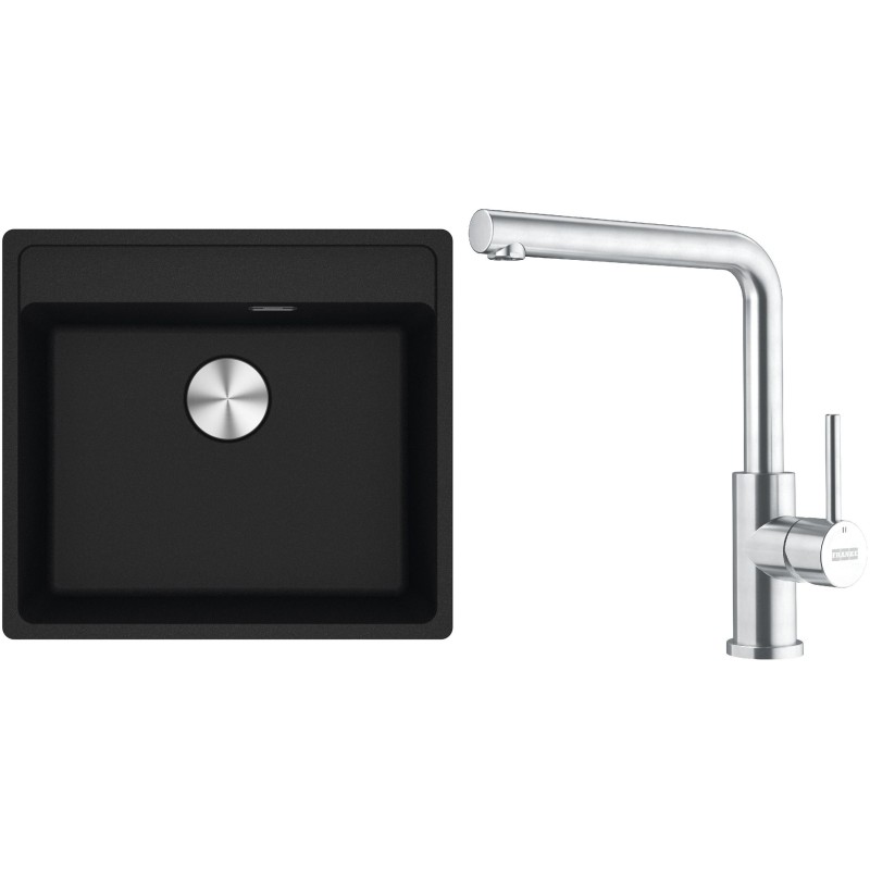 Cenově zvýhodněný set Franke G297O obsahuje granitový dřez jednodřez MRG 610-52 RTL Onyx a baterii FC 6985.501 SMART GLENDA Celonerez.