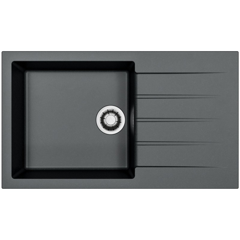 Granitový dřez s odkapem, provedení Carbon A91, otočný, rozměr 860 x 500 mm, vana 445 x 425 x 200 mm, horní montáž, minimálně 60 cm skříňka, s excentrem, 2 otvory z výroby.