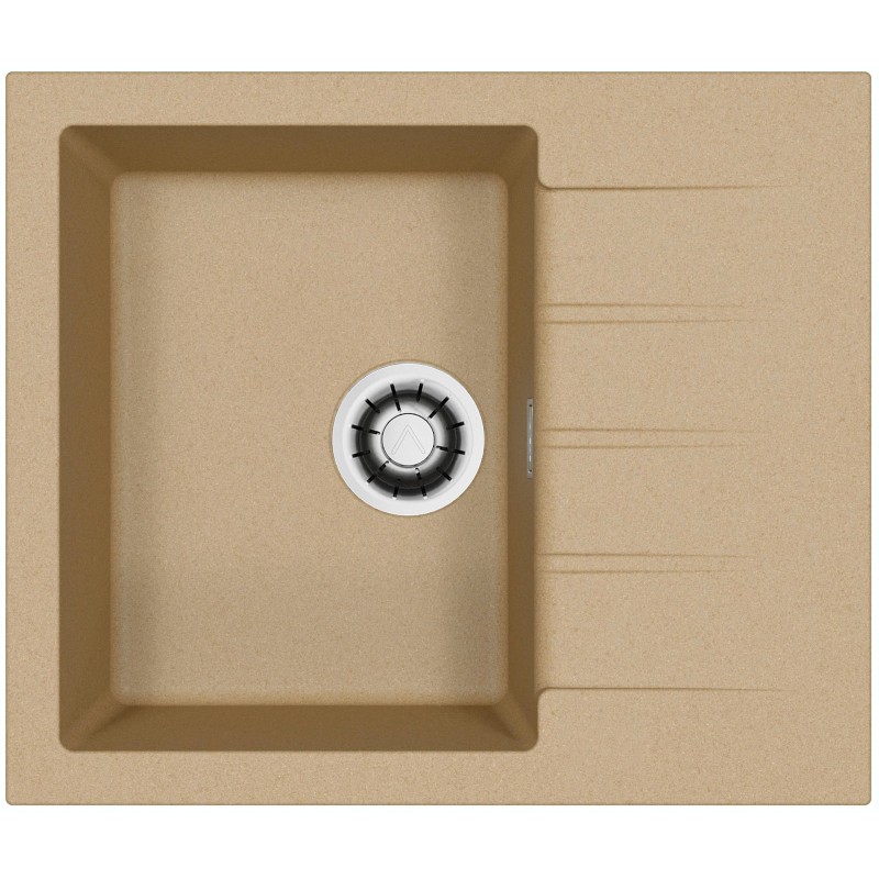 Granitový dřez s odkapem, provedení Clay A50, otočný, rozměr 590 x 500 mm, vana 325 x 425 x 200 mm, horní montáž, minimálně 45 cm skříňka, s excentrem, 2 otvory z výroby.