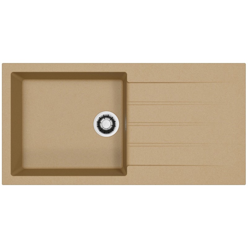 Granitový dřez s odkapem, provedení Clay A50, otočný, rozměr 1000 x 500 mm, vana 475 x 425 x 200 mm, horní montáž, minimálně 60 cm skříňka, s excentrem, 2 otvory z výroby.