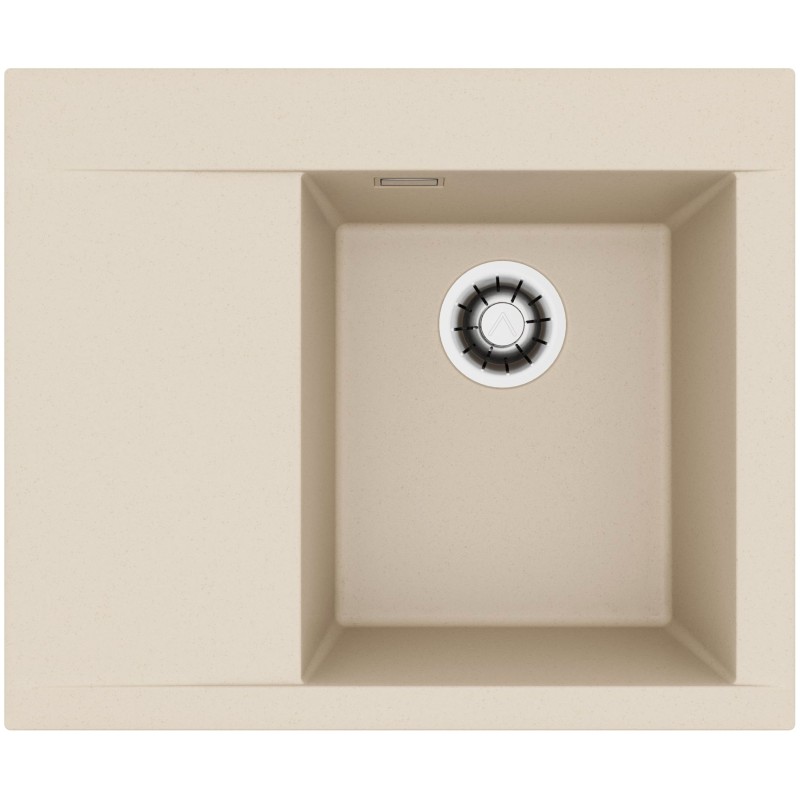 Granitový dřez s odkapem, provedení Ivory A20, pravý, rozměr 615 x 515 mm, vana 340 x 400 x 198 mm, horní montáž, minimálně 45 cm skříňka.