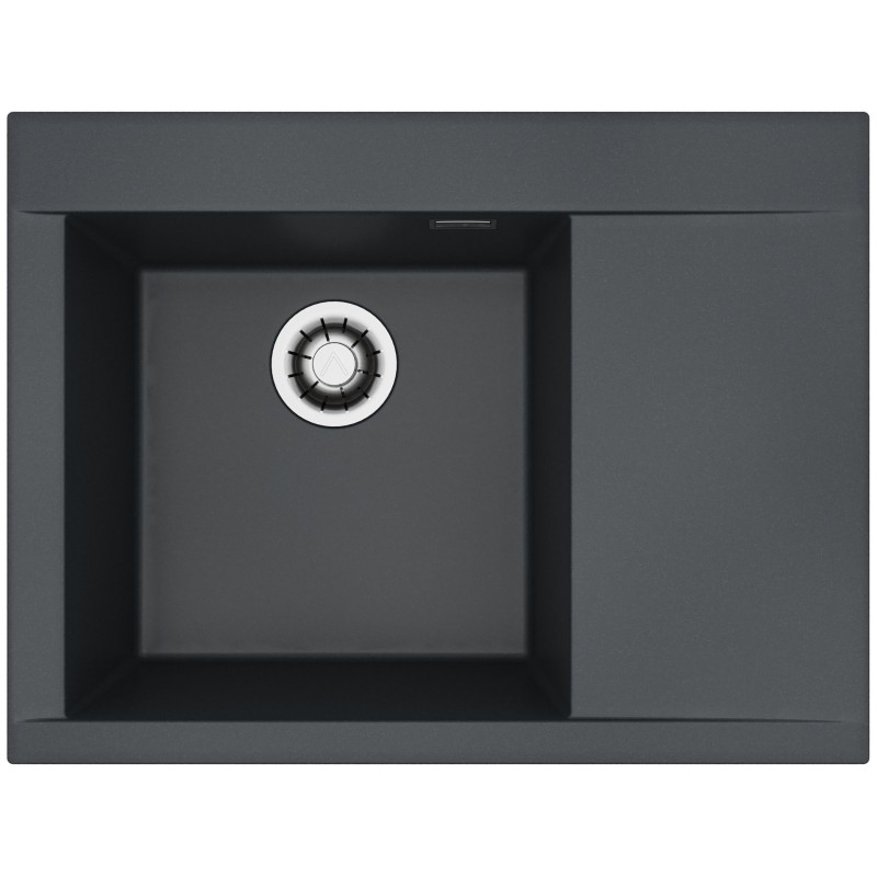 Granitový dřez s odkapem, provedení Deep Black A90, levý, rozměr 680 x 515 mm, vana 400 x 400 x 198 mm, horní montáž, minimálně 50 cm skříňka.