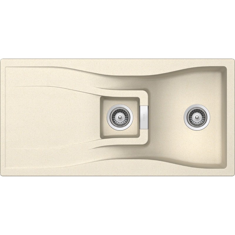 Granitový dřez s vaničkou a odkapem, provedení Magnolia, otočný, rozměr 1 000 x 500 mm, vana 332 x 435 x 180 mm a 168 x 173 x 140 mm, horní montáž, minimálně 60 cm skříňka, s excentrem.
