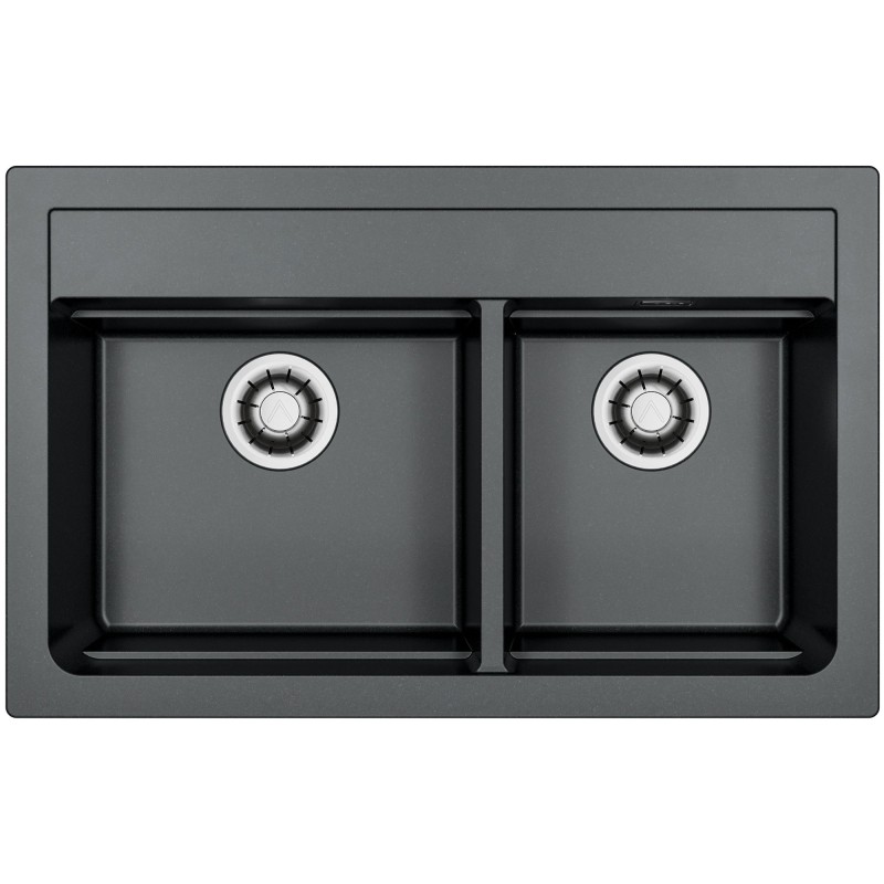 Granitový dvojdřez, provedení Carbon A91, rozměr 790 x 500 mm, vana 390 x 340 x 195 mm a 300 x 340 x 195 mm, horní nebo spodní montáž, minimálně 80 cm skříňka, s excentrem, 1 otvor z výroby.