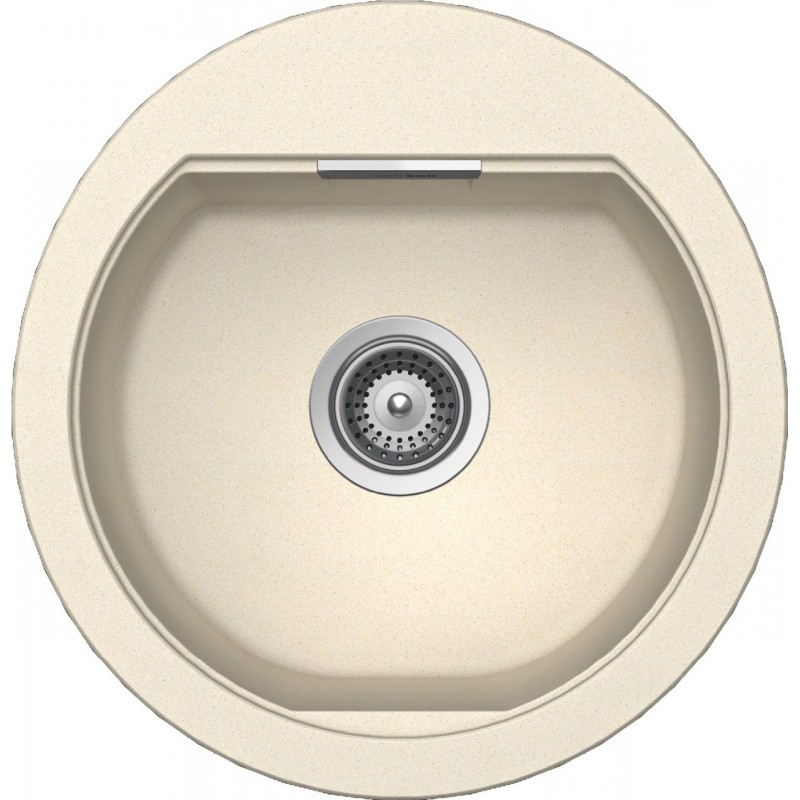 Kulatý granitový jednodřez, provedení Magnolia, rozměr 485 x 500 mm, vana 400 x 356 x 200 mm, horní montáž, minimálně 45 cm skříňka, s excentrem.