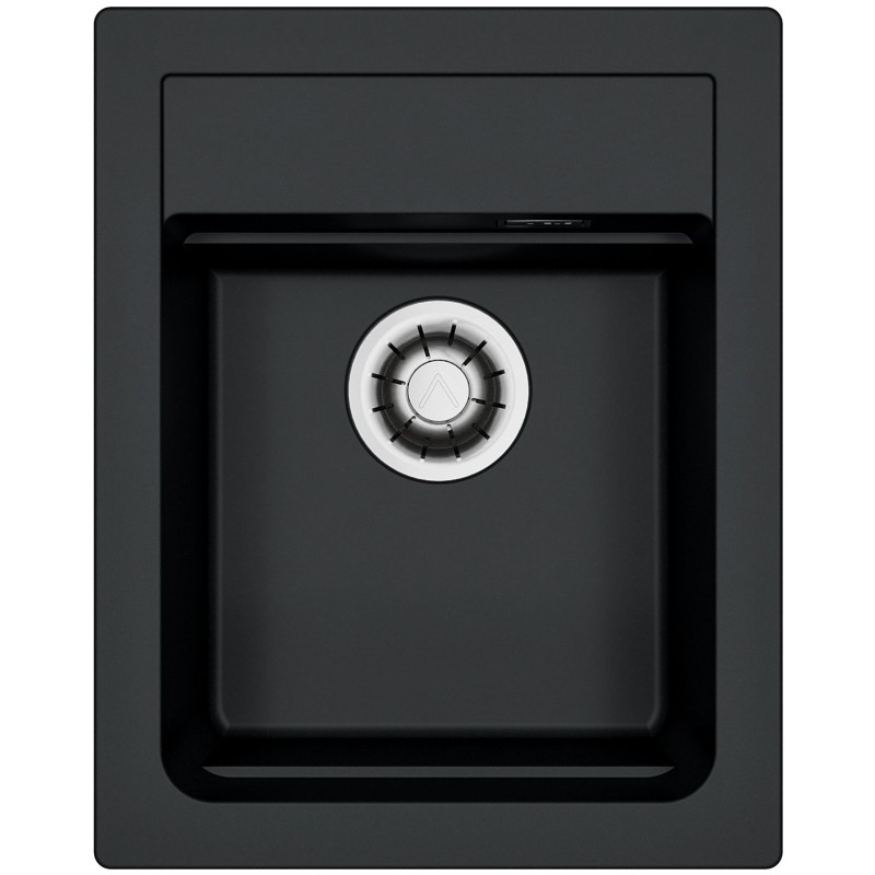 Hranatý granitový jednodřez, provedení Deep Black A90, rozměr 400 x 500 mm, vana 320 x 340 x 195 mm, horní nebo spodní montáž, minimálně 40 cm skříňka, s excentrem, 1 otvor z výroby.