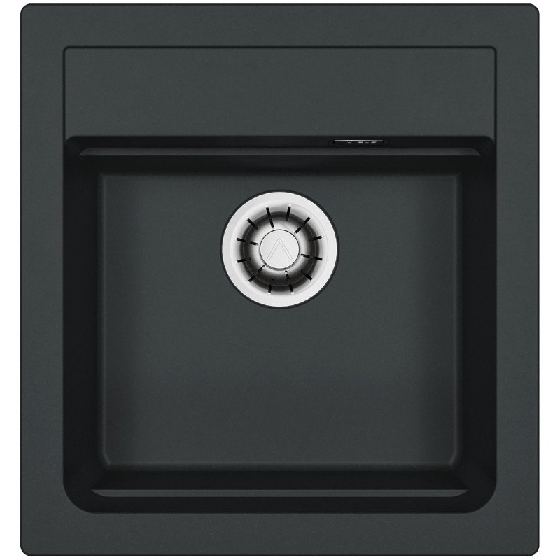 Hranatý granitový jednodřez, provedení Deep Black A90, rozměr 470 x 500 mm, vana 390 x 340 x 195 mm, horní nebo spodní montáž, minimálně 45 cm skříňka, s excentrem, 1 otvor z výroby.